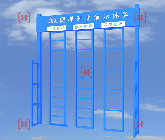 1、让体验者感受攀爬不符合制造规范和劣质爬梯所带来的严重后果。